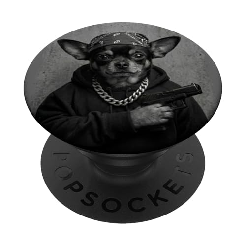 Street Style Chihuahua Dog Gangster Bandana & Chain Funny PopSockets Adhesive PopGrip