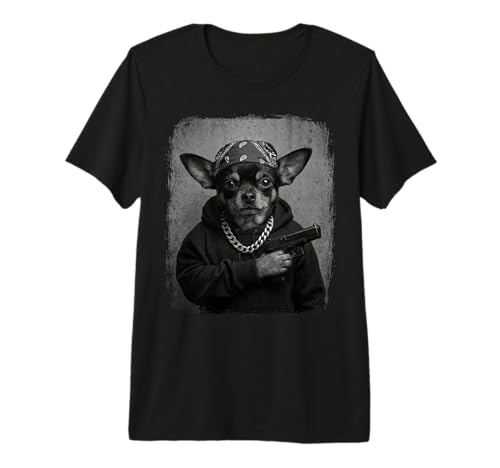 Street Style Chihuahua Dog Gangster Bandana & Chain Funny Premium T-Shirt