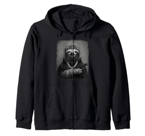 Street Style Sloth Gangster Bandana & Chain Funny Zip Hoodie