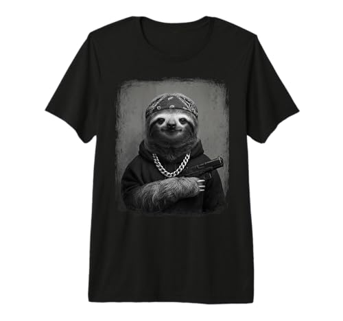 Street Style Sloth Gangster Bandana & Chain Funny Premium T-Shirt