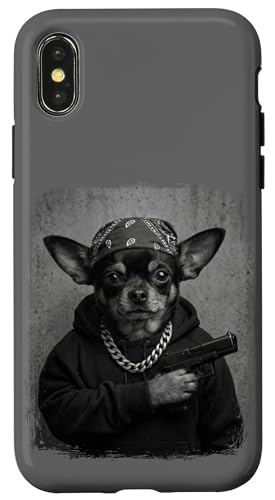 Street Style Chihuahua Dog Gangster Bandana & Chain Funny Case for iPhone X/XS