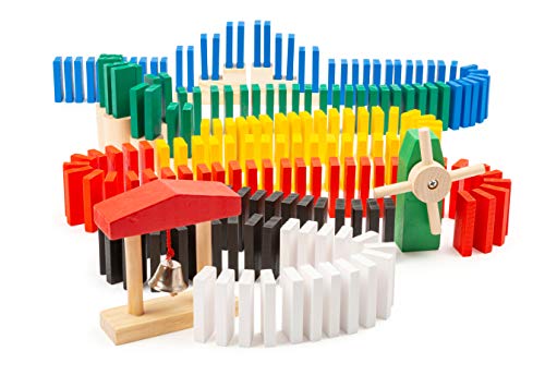 Small Foot 11402 Domino Rally, a chain reaction game made of wood, 490 pieces, for ages 3 years and up