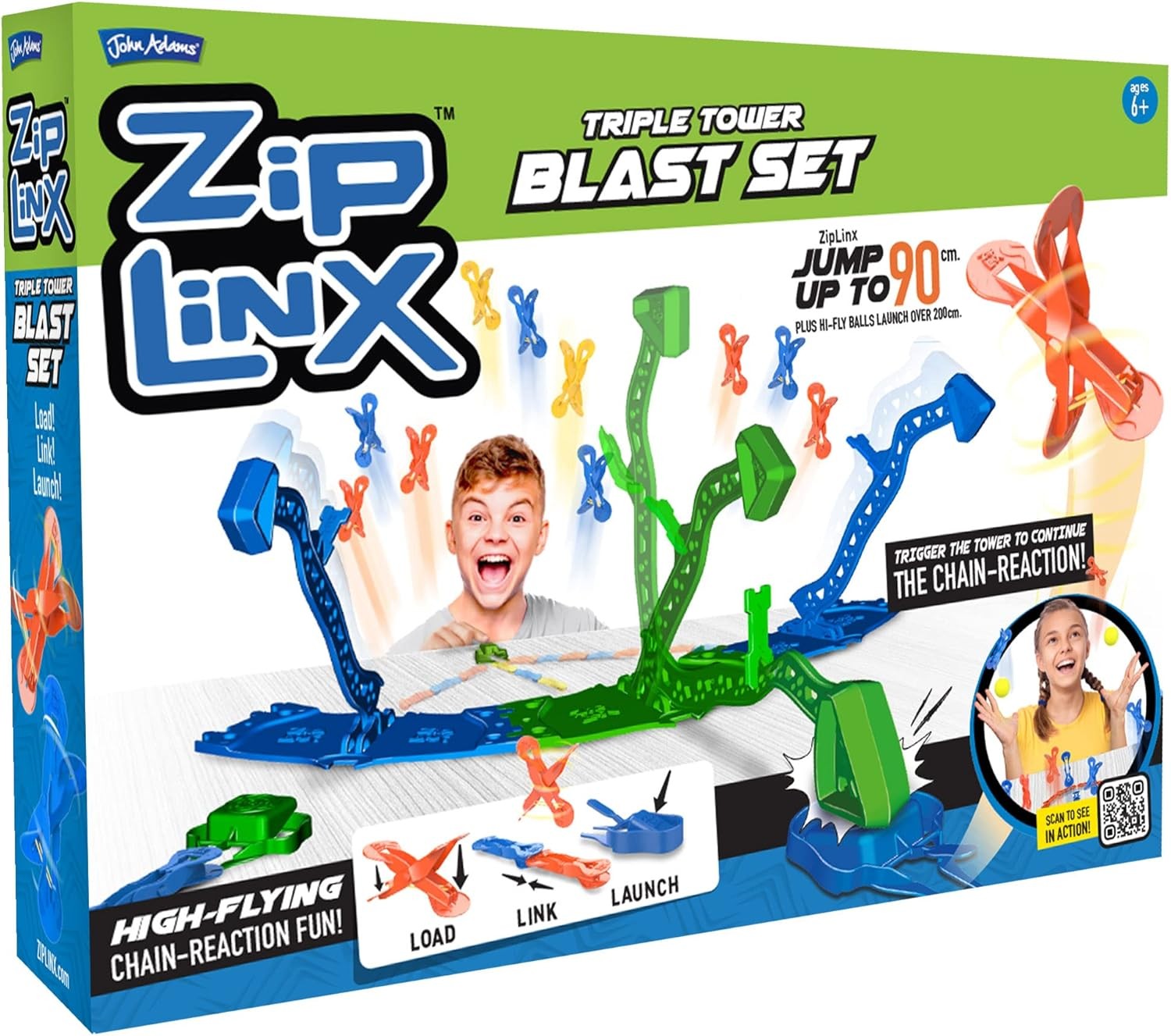 John Adams | ZipLinx - Triple Tower Blast Set: high-flying chain-reaction fun!