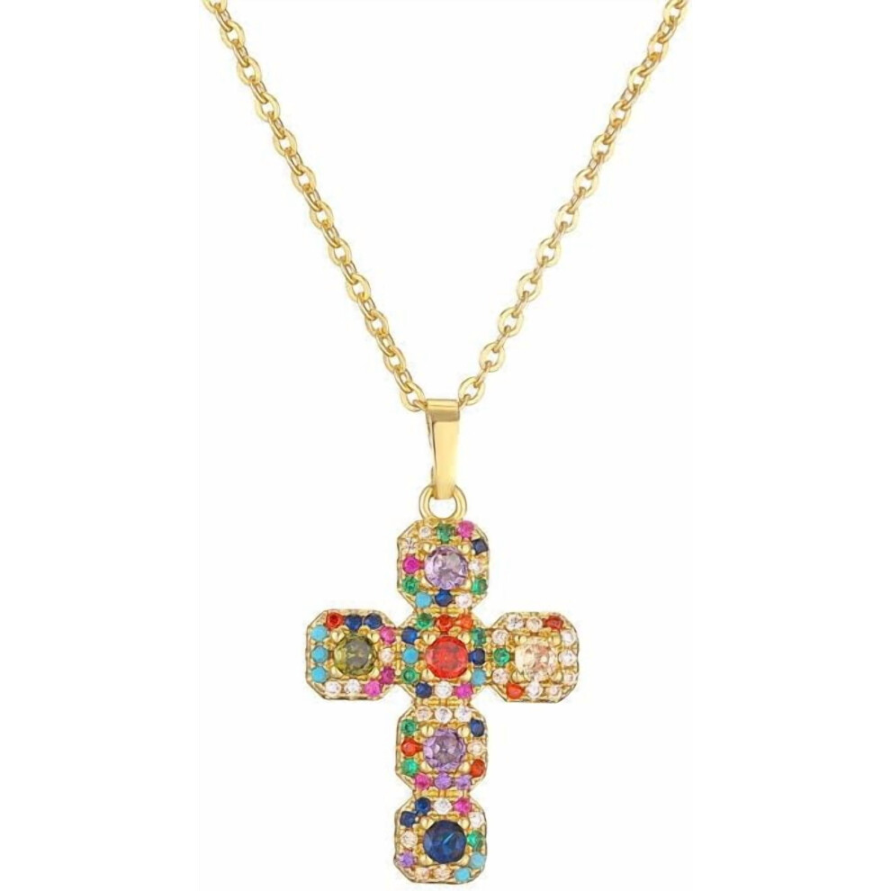CZ Cross Necklace for Women 18K Gold Plated Colour Cubic Zirconia Cross Faith Pendant Necklaces Trendy Gold Chains Chokers