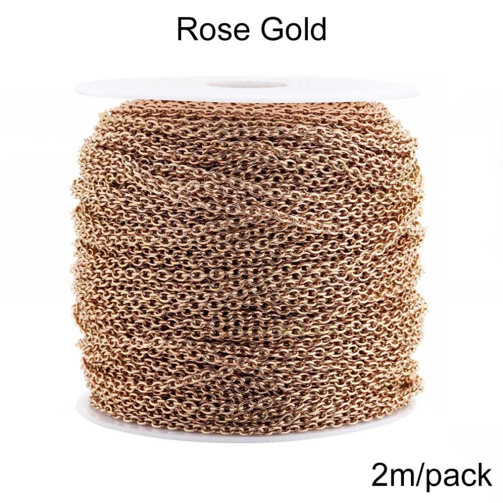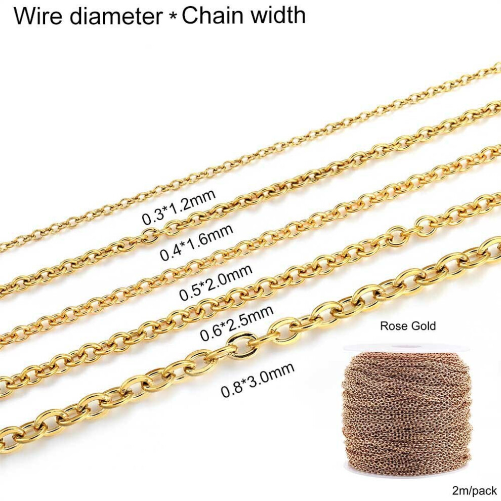 (Rose Gold 01 White-0.3x1.2mm) 2m/lot 1.2-3mm Width Cross Stainless Steel Necklaces Chains Bulk Link Chains For DIY Jewelry Making Supplies Accessorie