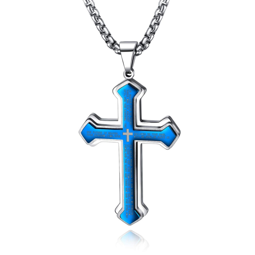 Zinvefa Cross Necklace for Men,Stainless Steel Cross Chains Necklace Men Women Silver/Gold/Black Cross Pendant 28 * 15mm-50 * 30mm