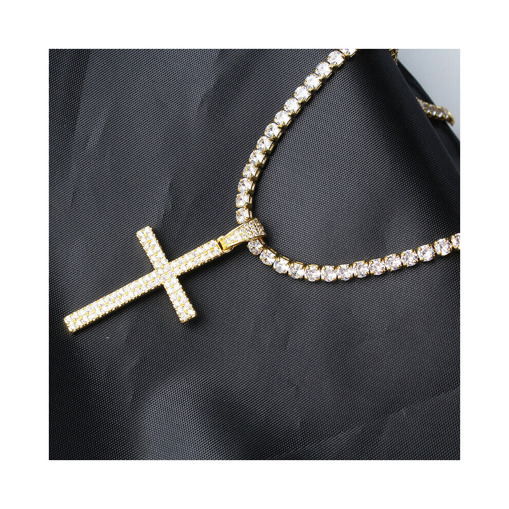 (Gold-color, 60cm) Hip Hop Micro Pave Zircon Cross Pendant Zircon Crystal Size Tennis Chain Necklace Ice Out Chains Around The Neck