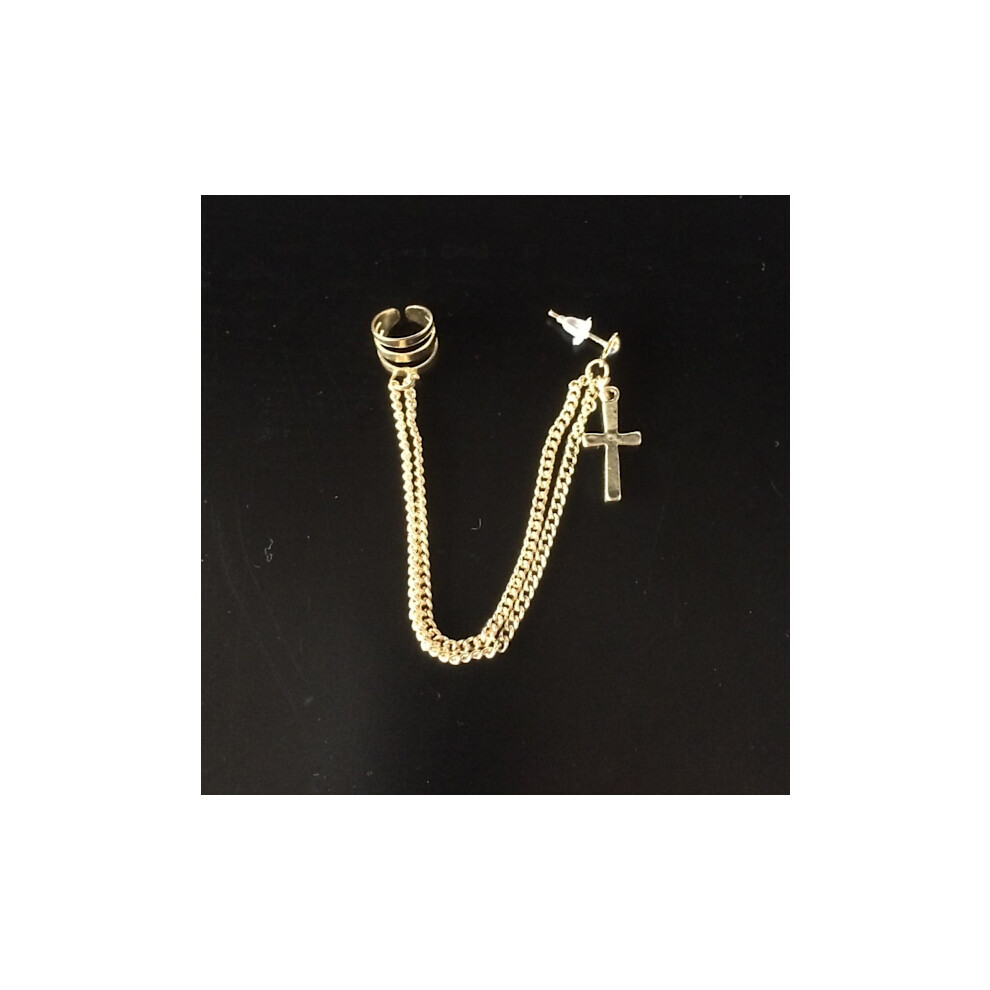 Earcuff Ear Cuff & Earring with Double Chains & Cross - Gold Gold