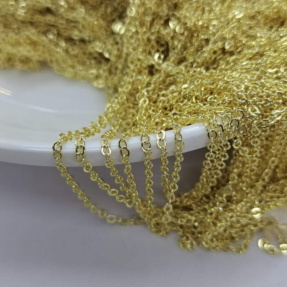 (14K Gold Plated White-2mm Width) 2M Brass Plated Flat O Shape Cross Tiny Chains Oval Link Cable Chain Bulk Supplies for Diy Necklace Jewelry Making F