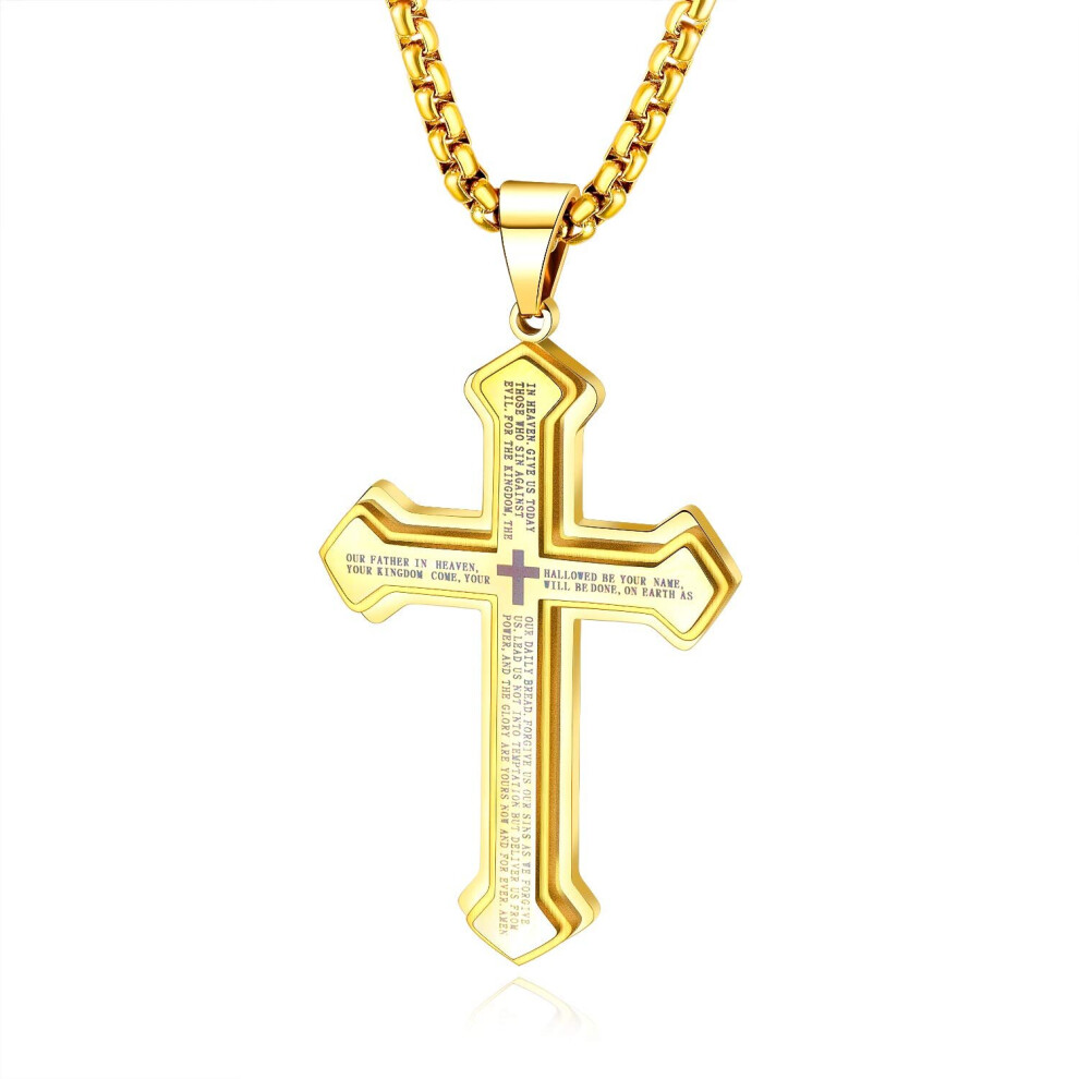 Oidea Mens Jesus Cross Pendant Necklace: Gold Tone Punk Stainless Steel Necklace for Men Women Amulet Christian Jewelry Gift with 21.65'' Rough Chains