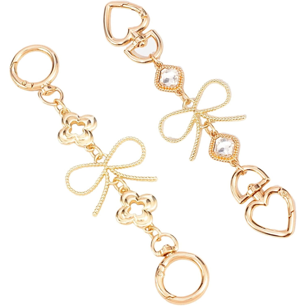 2 Pack Bow Purse Strap Extender Chains Crystal Gold Metal Bag Replacement Strap for Cross Body Handbag Shoulder Bag