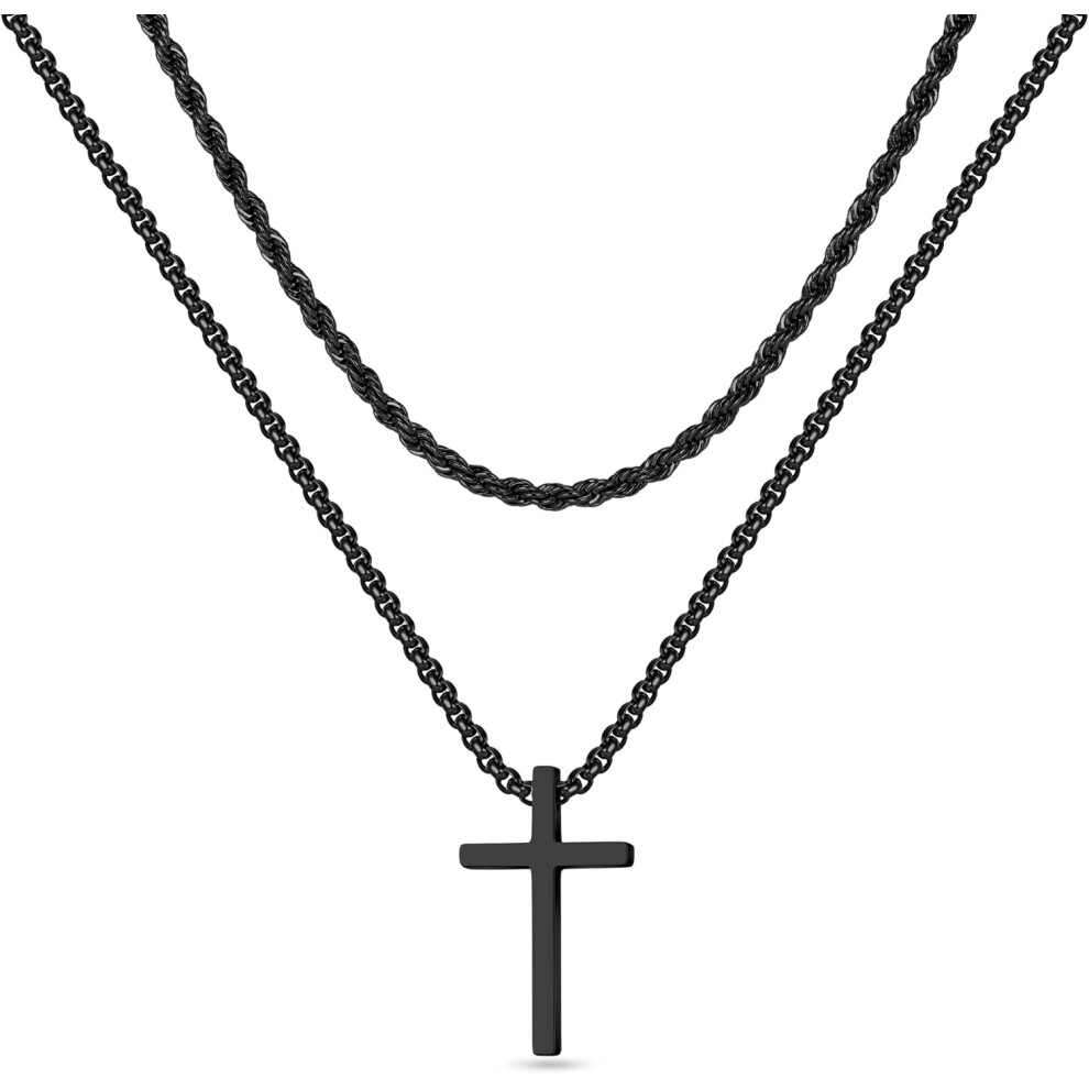 Men's Cross Necklace â Gold/Silver/Black Stainless Steel, Layered Rope & Box Chain, 16-24 Inch, Compatible with All Standard Chains