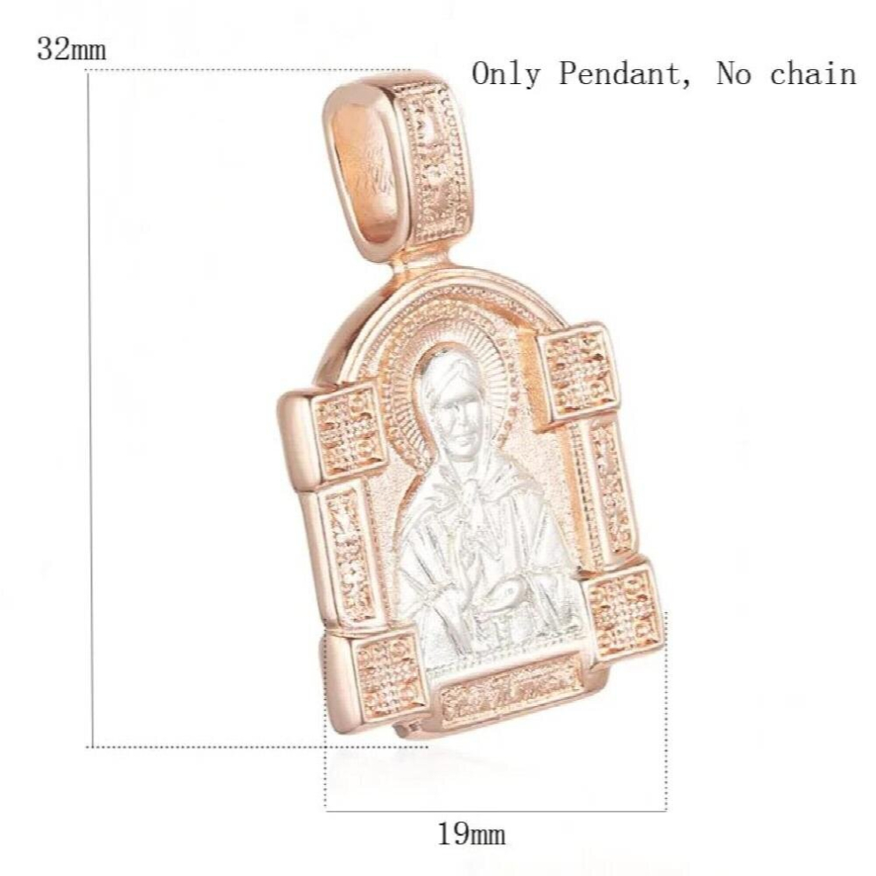 FJ Traditional 585 Rose Gold+White Pendant Women Men Classic Copper Eastern Orthodox Cross +Optional Chains