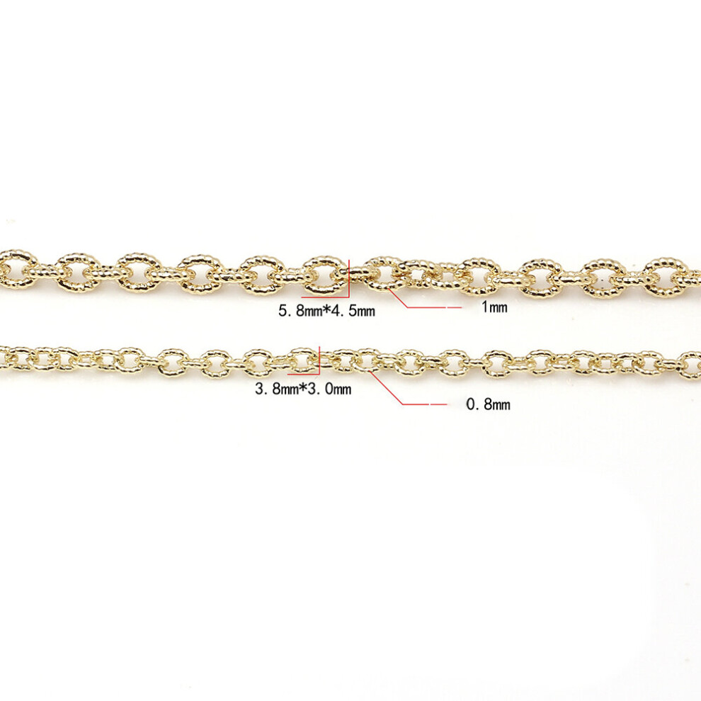 (14K Real Gold Plated White-3.8x3.0mm (Small)) 1M Brass Cable Chain For Jewelry Making,14K Plated Textured Oval Cross Link Cable Chains For Diy Bracel