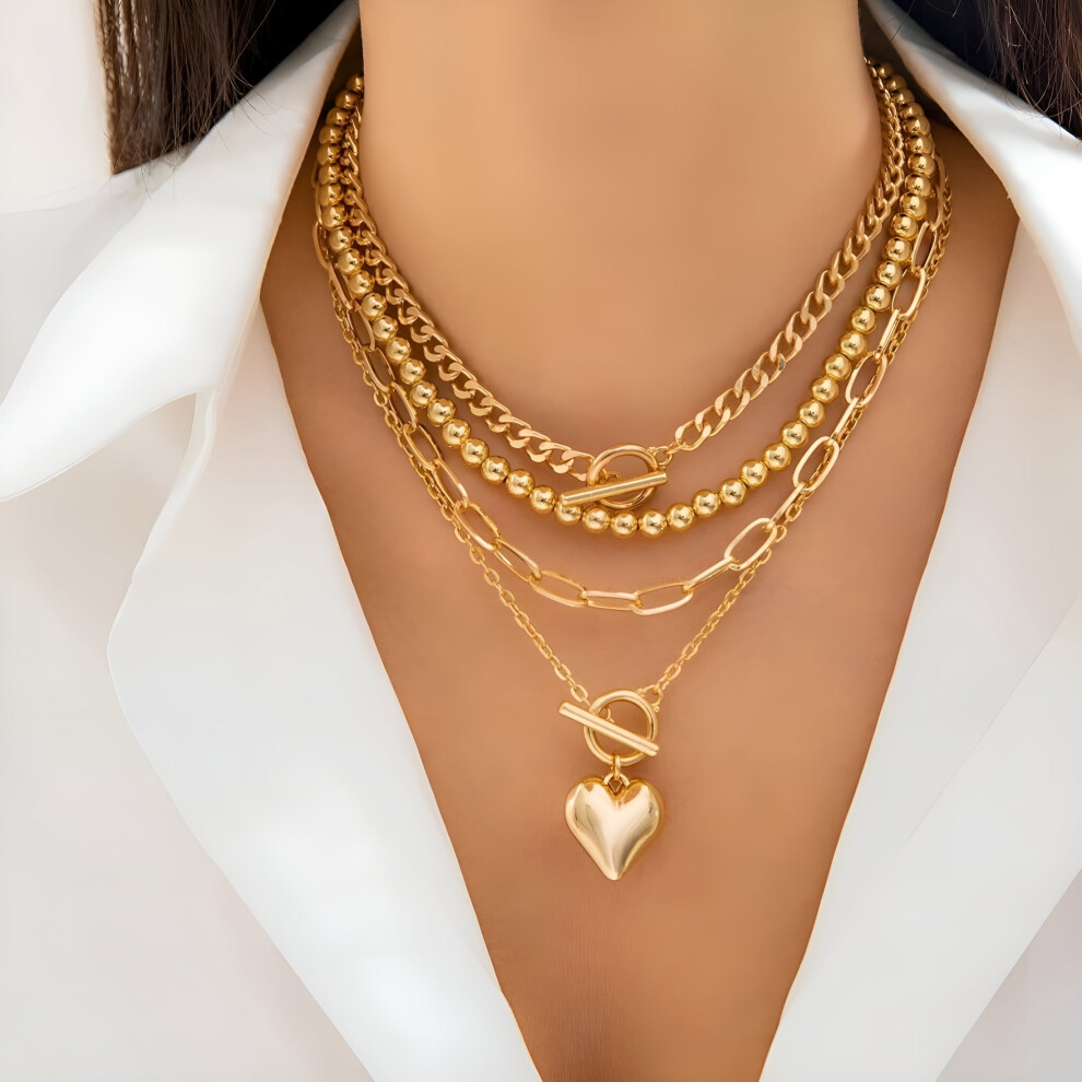 DESIGNICE Gold Layered Necklaces for Women â Herringbone, Paperclip & Cuban Chains with Coin, Heart, Star, Cross, T-Bar Pendants â Stackable