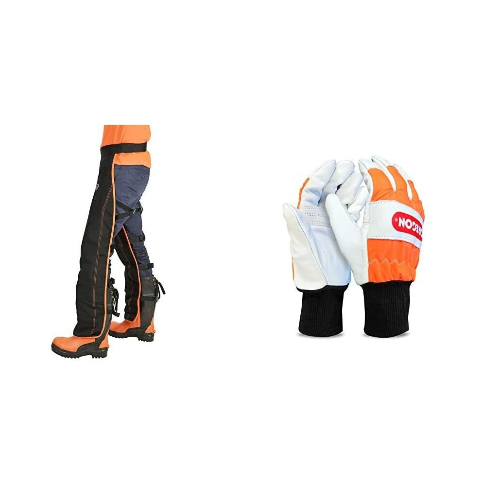 OREGON Universal Type A Chainsaw Safety Leggings, Adjustable Protective Chaps Trousers - Front Protection Only (575780) & Large Chainsaw Protection Gloves
