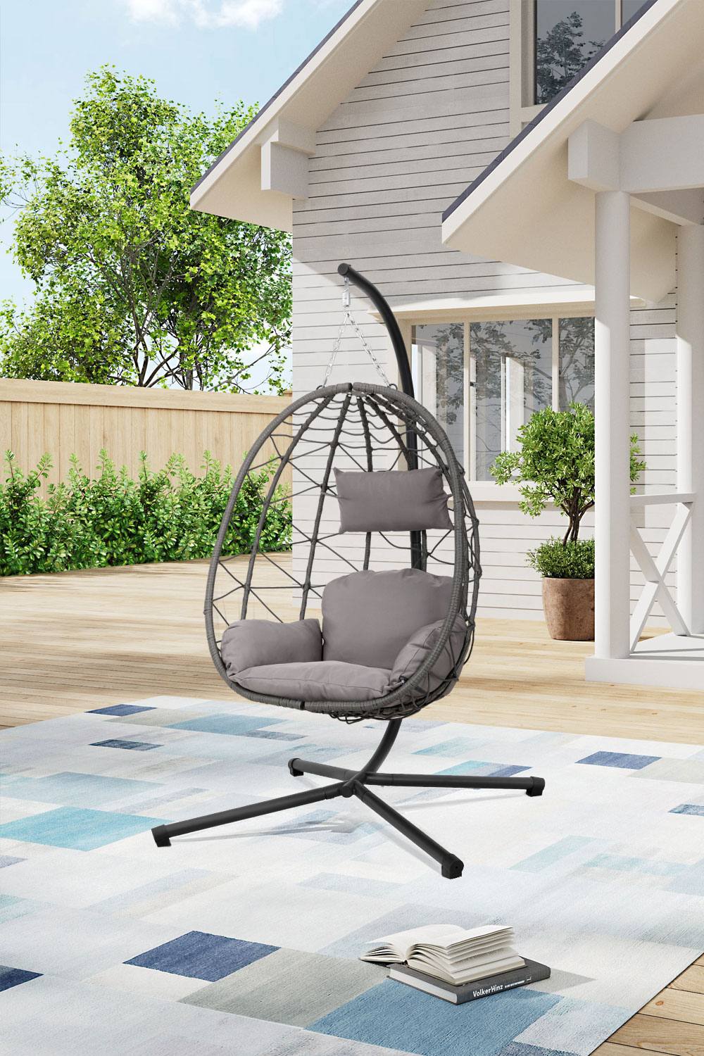 Living and Home Freestanding Hanging Chair with Stand and Cushion for Indoor & Outdoor in Grey