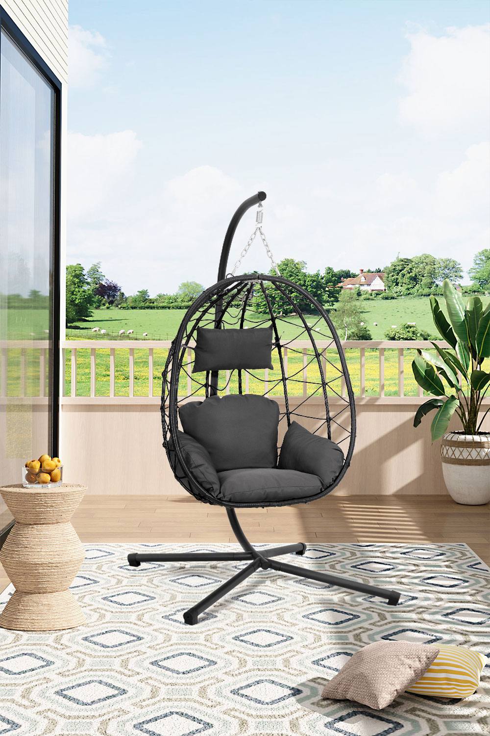 Living and Home Egg-Shaped Hanging Chair with Stand and Cushion in Black