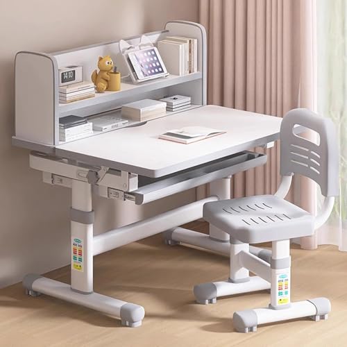 CYQQRDZSW Adjustable Kids Table and Chairs, Small Desk with Drawers, Primary School Desk and Chair, Writing Desk for Kids Set Combination for Writing, Reading and Learning(Gray)