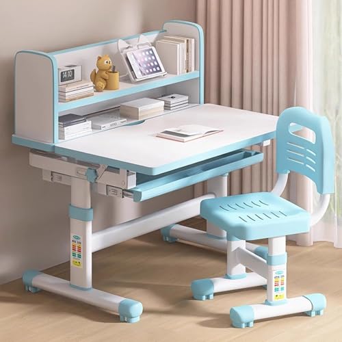 CYQQRDZSW Adjustable Kids Table and Chairs, Small Desk with Drawers, Primary School Desk and Chair, Writing Desk for Kids Set Combination for Writing, Reading and Learning(Blue)