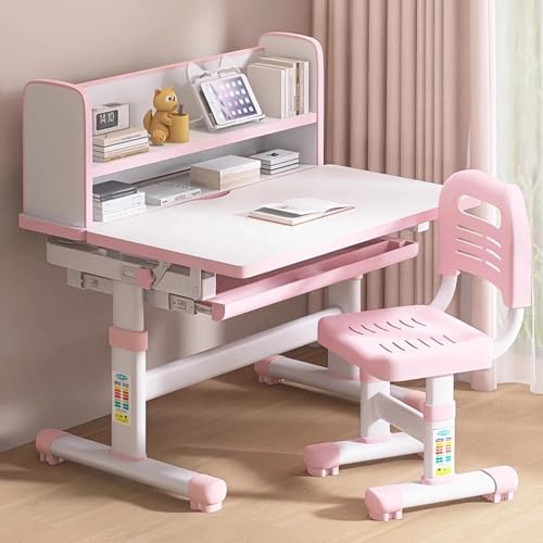 CYQQRDZSW Adjustable Kids Table and Chairs, Small Desk with Drawers, Primary School Desk and Chair, Writing Desk for Kids Set Combination for Writing, Reading and Learning(Pink)
