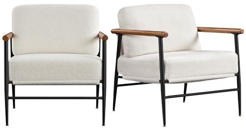costoffs Armchair, Modern Boucle Living Room Chair, Metal Frame Accent Chair with Pillow and Cushion for Bedroom, Sunrooms, Ivory, 2PCS