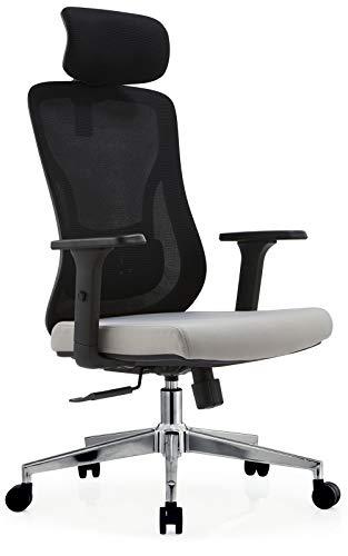 Duwinson Ergonomic Home Office Chair With 4-Way Adjustment Armrest, Mesh Computer Desk Chair, Reclining Adjustment Back Support, Adjustable Headrest, Padded Lumbar Support (Grey-UE)