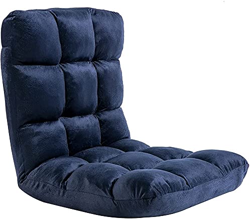 LDAILY 14-Position Floor Chair, Adjustable Floor Chair with Back Support, Folding Sofa Chair w/Padded Cushion, Memory Foam Couch Recliner, Gaming Chair Floor for Reading, Meditating (Grey)