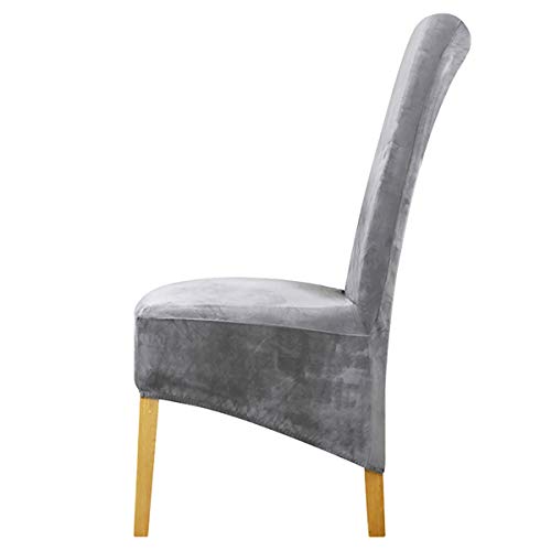 KELUINA Modern Decorations Resistant Velvet Stretch Dining Chair Slipcovers - Spandex Plush Short Chair Covers Solid Large Dining Room Chair Protector Home Decor (Silver Grey,Set of 4(Large))