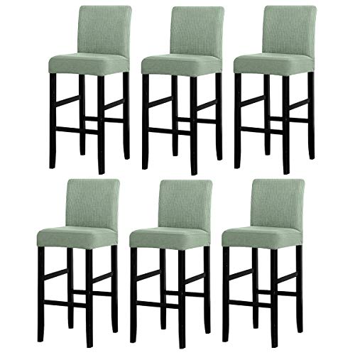 LANSHENG Bar Chair Stool Covers, Stretch Removable Washable Chair Slipcover for Short Swivel Dinning Chair Back Chair Bar Stool Chair (Cyan,6 Pcs)