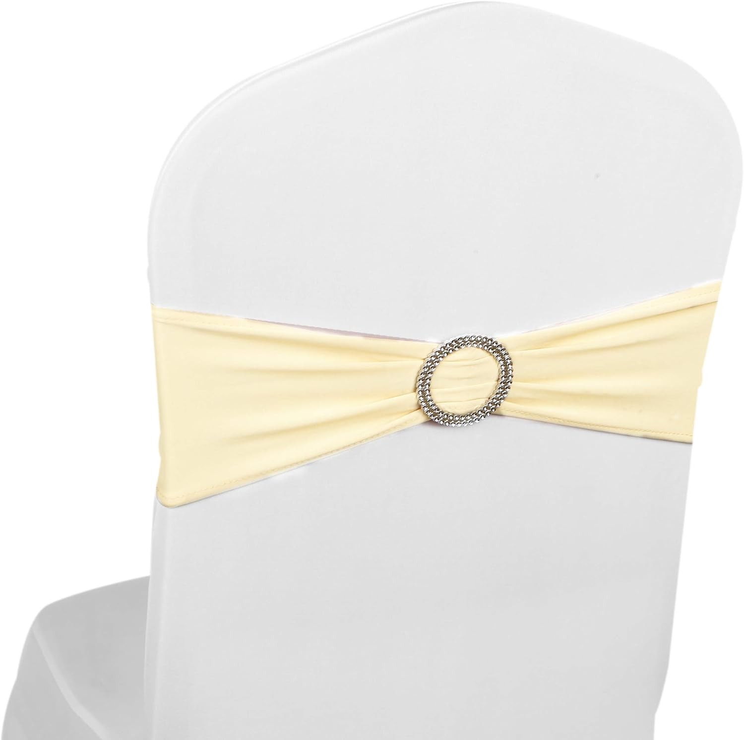 Elastic Stretch Spandex Chair Covers Sashes Bands With Buckle 50PCS, Ivory