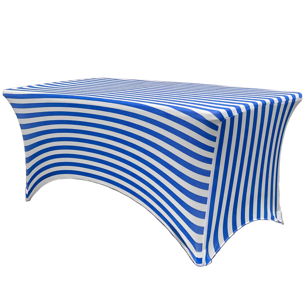 YOUR CHAIR COVERS - 6ft Royal Blue & White Striped Rectangular Spandex Table Covers Fitted Tablecloth for Wedding Event Patio Decorations Elastic Fab
