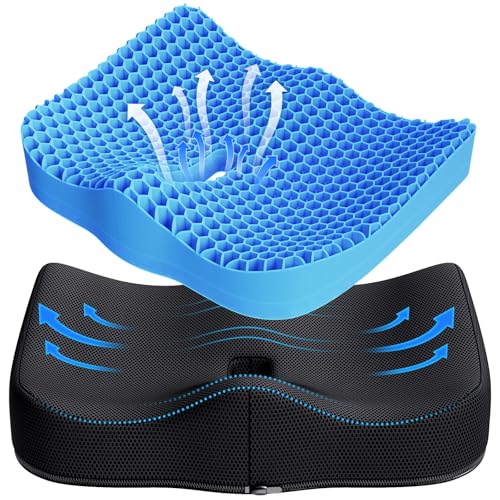 Gel Seat Cushion, Pressure Cushion 2025 Double-Structure Ergonomics Honeycomb Office Chair Soft Sitter Desk Chair Coccyx Sciatica,Cushion for Long Sitting Kayak Wheelchair Car Seat Cushions