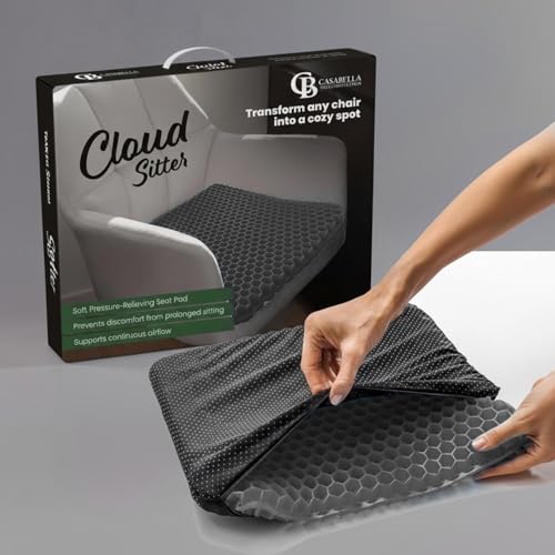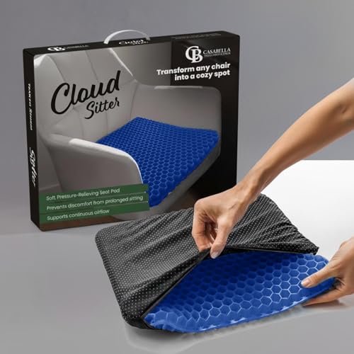 Casabella Gel Seat Cushion for Back Pain Relief - Honeycomb Orthopaedic Cushion for Sciatica & Coccyx Pain - Non-Slip, Breathable Office Chair & Car Seat Cushion for Long Sitting, Wheelchair Grey