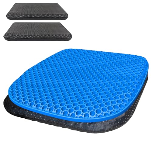 MOUYAT 2 PCS Gel Seat Cushion, Soft Honeycomb Cushion, Breathable Gel Chair Cushion with Non-Slip Cover for Office Chair Desk, Car, Wheelchair, Road Trips, 40 x 35 x 2.5cm