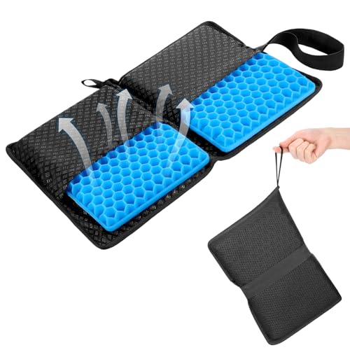 Hejo Gel Seat Cushion, Portable Travel Seat Cushion, Foldable Design for Pressure Relief - Portable for Office Chair, Travel, Car, Airplane, Wheelchair, Bleachers & Camping Accessories (Blue)