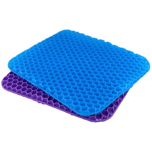Large Gel Seat Cushion,Double Thick Soft Sitter Cushion,Honeycomb Design Seat with Relieving Back coccyx Pain Pressure,Cool Gel Orthopaedic Ergonomic Cushions for Car Office Home Wheelchair&Chair