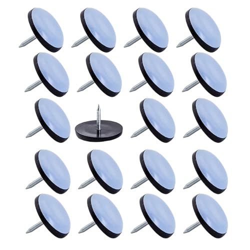 GINOYA Teflon Furniture Sliders, Chair Leg Floor Protectors, 20pcs 25mm Furniture Glides with Nail for Easy Moving on Carpet Hardwood Tile (Grayish Blue)