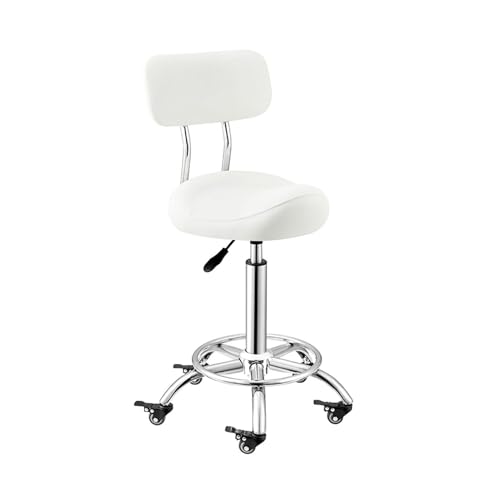 Saddle Stool Professional,Hydraulic Adjustable Rolling Stool with Wheels,PU Leather Office Chair,for Salon Massage Home,Load 440LBS(White)