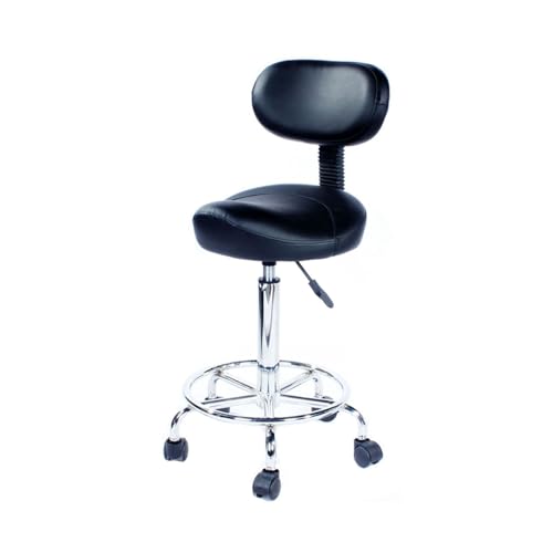 Saddle Stool Chair with Back Support Footrest,Saddle Stool Adjustable Height Rolling Salon Chair,for Hair Beauty Massage(Black)