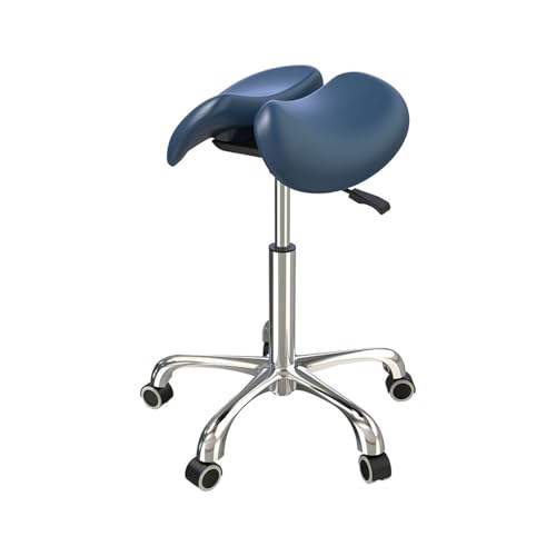 Saddle Stool Professional,Hydraulic Adjustable Rolling Stool with Wheels,PU Leather Office Chair,for Salon Massage Home,Load 440LBS(Blue)