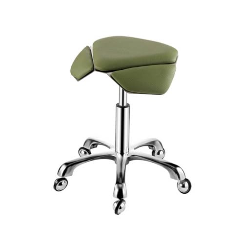 Saddle Stool,Ergonomic with Wheels,Height Adjustable Thickened Leather Swivel Chair,for Salon Massage Clinic(Green)