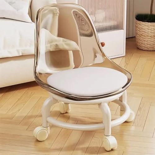 TONG TONG Low Rolling Stool,Acrylic Plastic Roller Seat 360 Degree Rotating Wheels Rolling Stool Chair For Home Garden Massage Office Garage Shop Fitness Sport (White)