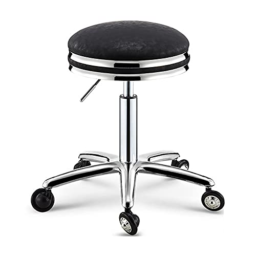 IUBGFTO Round Rolling Stool workshop stool office stool with Wheels PU Leather Height Adjustable 17,98-25,19in Swivel SPA Salon Stools Chair for Home Office Massage Spa (B One Size)