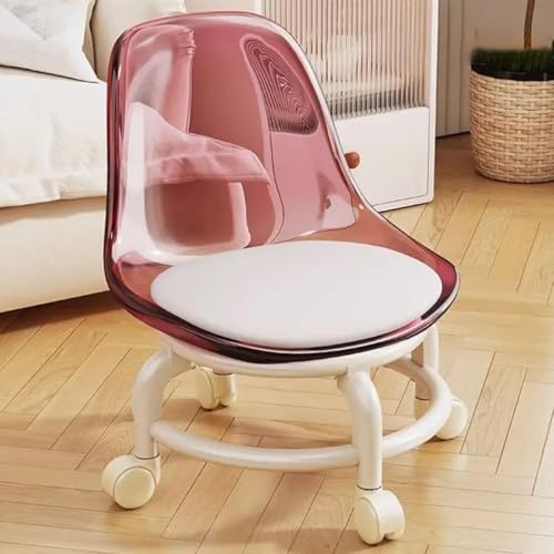 TONG TONG Low Rolling Stool,Acrylic Plastic Roller Seat 360 Degree Rotating Wheels Rolling Stool Chair For Home Garden Massage Office Garage Shop Fitness Sport (Pink)