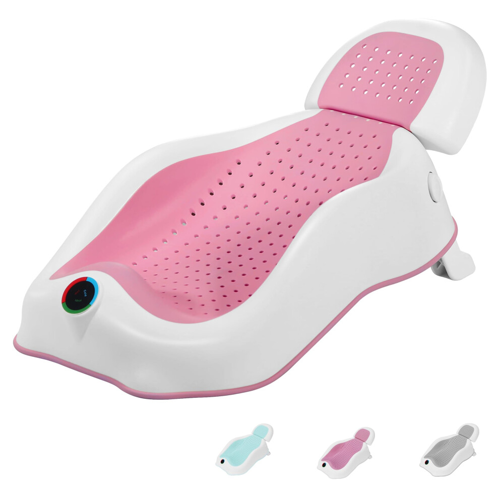 MAIKKB Baby Bath Seat Newborn Bath Seat with Thermometer,Foldable Baby Bath Support 0-6 Months Bath seat,Travel Bath Chair for Bathtub,Baby Essential