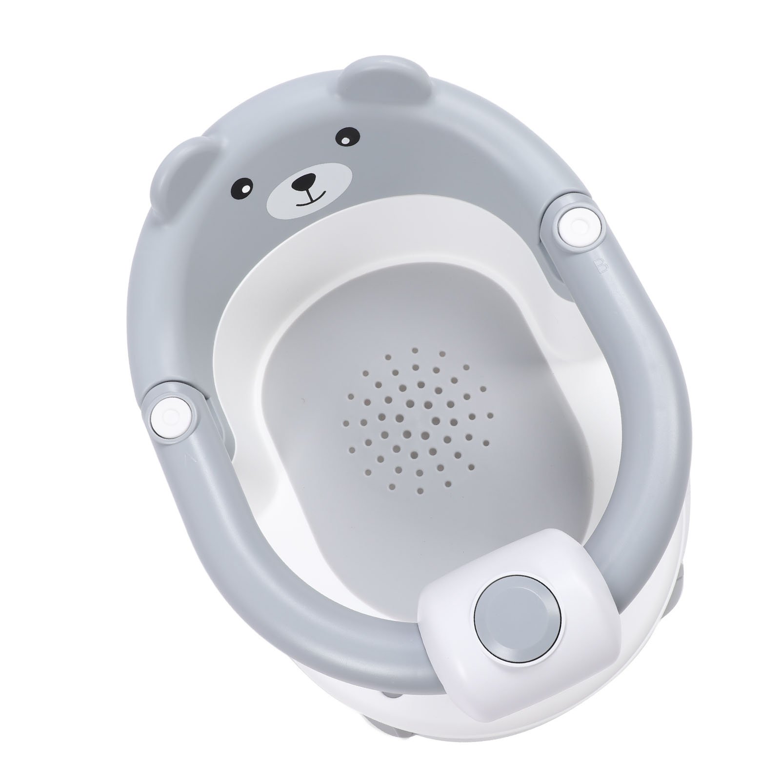 MAIKKB Baby Bath Seat Newborn Bath Seat with Thermometer,Foldable Baby Bath Support 0-6 Months Bath seat,Travel Bath Chair for Bathtub,Baby Essential Newborn Essential(Grey)