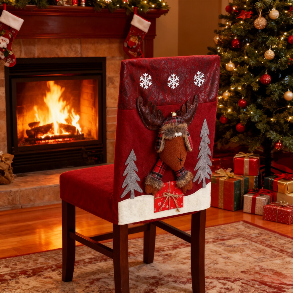 (C) Christmas Decorations Christmas Cartoons Stereoscopic Old Man Chair Cover Snowman Elks Chair Cover