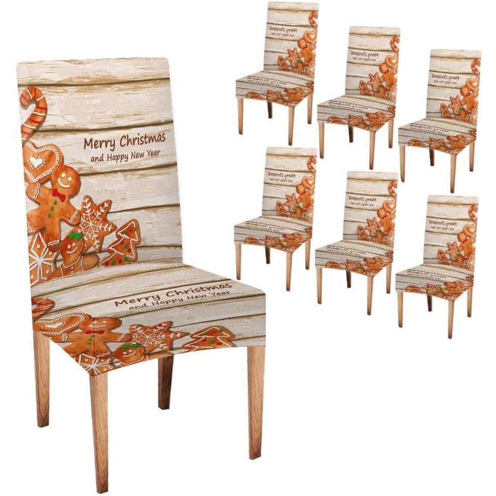 Christmas Gingerbread Man Chair Covers Set of 6, Stretch Parson Slipcovers, Removable & Washable, Compatible with Standard Dining Chairs