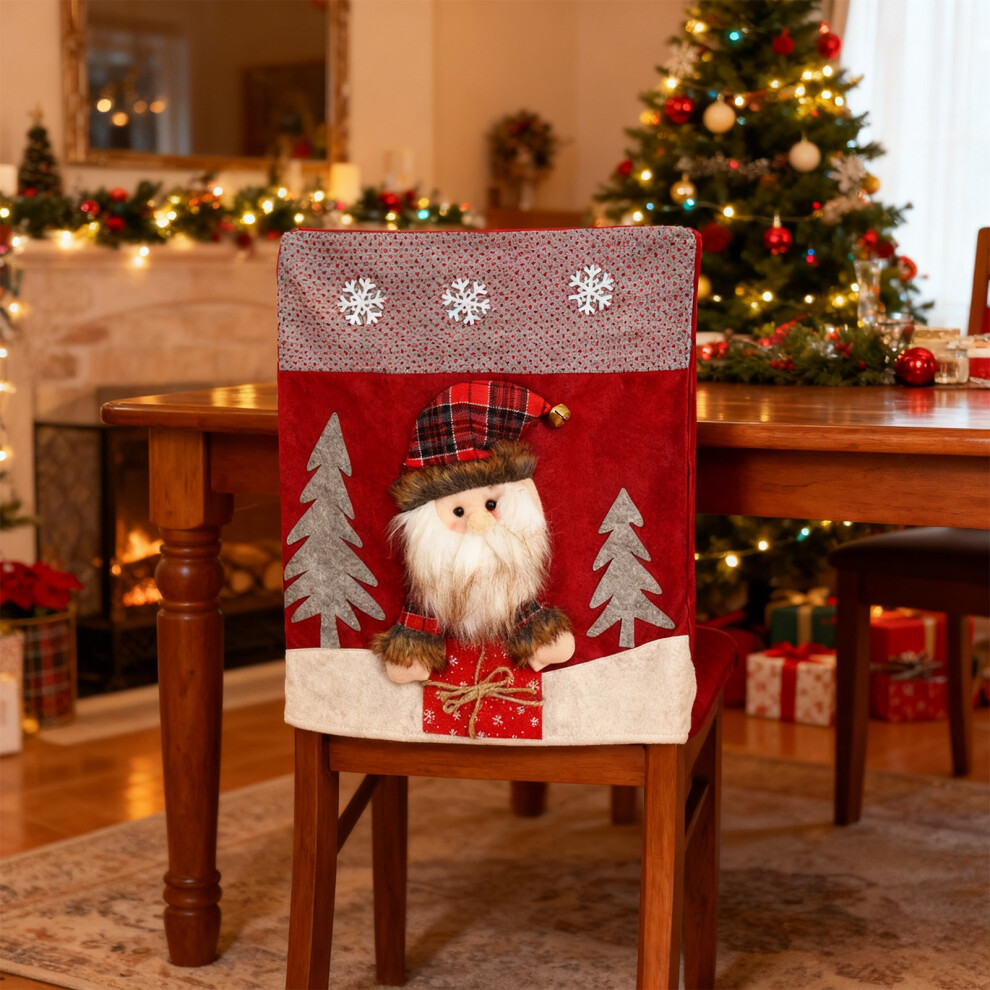 (A) Christmas Decorations Christmas Cartoons Stereoscopic Old Man Chair Cover Snowman Elks Chair Cover